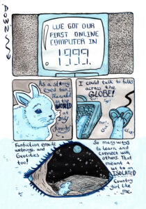 Three page comic created for the 2025 Words and Pictures Comic Jam. Theme: “Online” (2025)