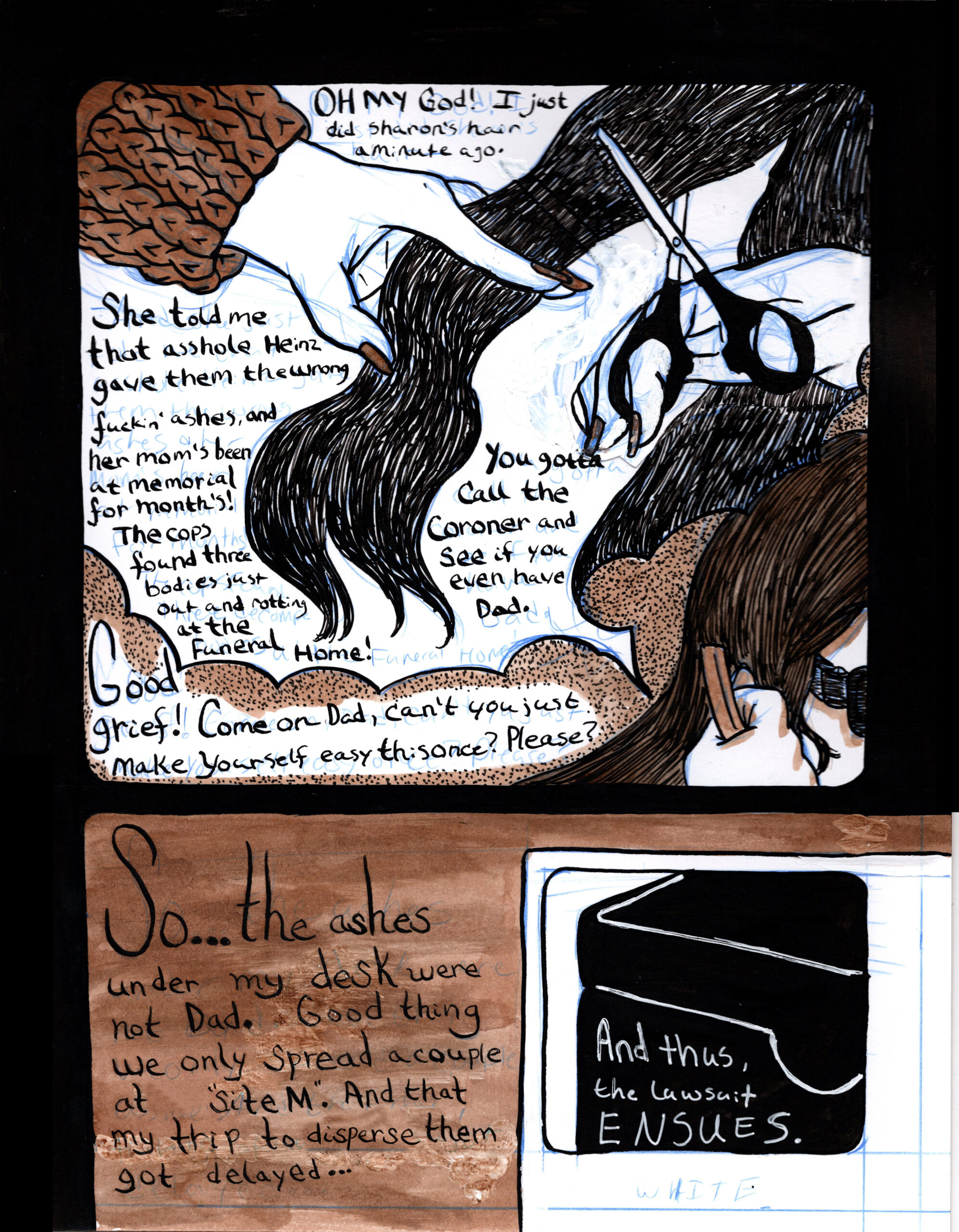 Turn the Page is a deeply personal project discussing the close care, and slow loss of my father to vascular dementia, our complicated relationship, and the lack of closure due to the–”allegedly”–disgustingly neglectful mishandling of over 80 cremains by the Heinz Funeral Home: resulting the in the permanent misplacement of my father’s cremains.